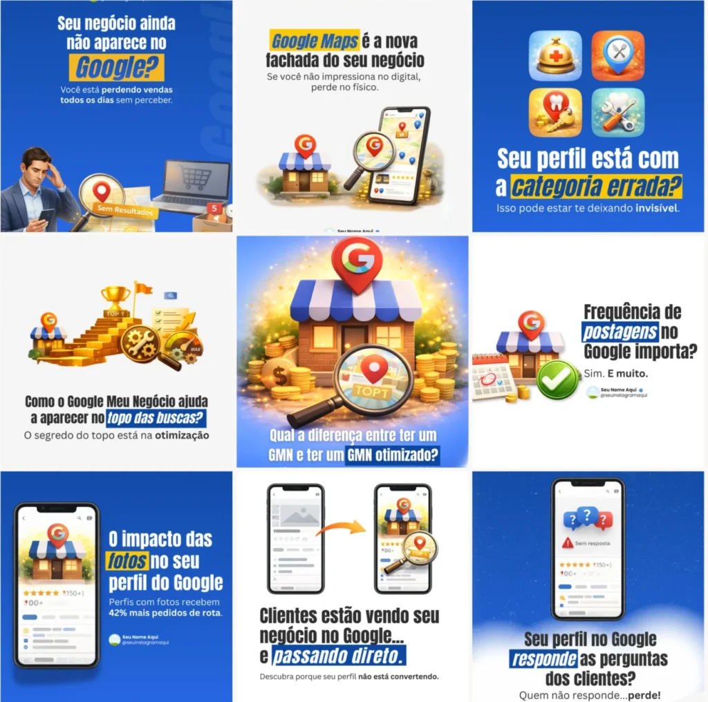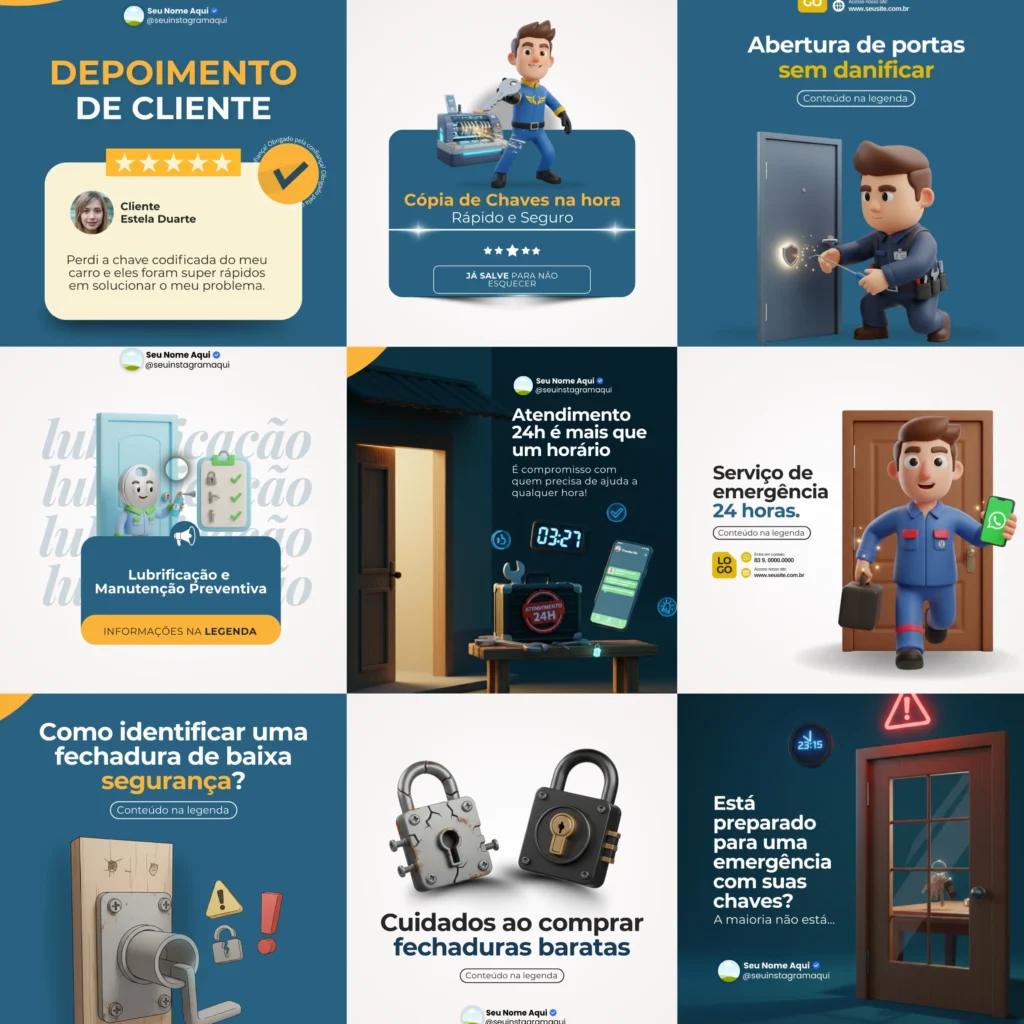 Conteúdos prontos, fáceis de personalizar e criados para valorizar sua presença digital em poucos minutos. Ideal para quem quer transformar o Instagram em uma vitrine profissional.